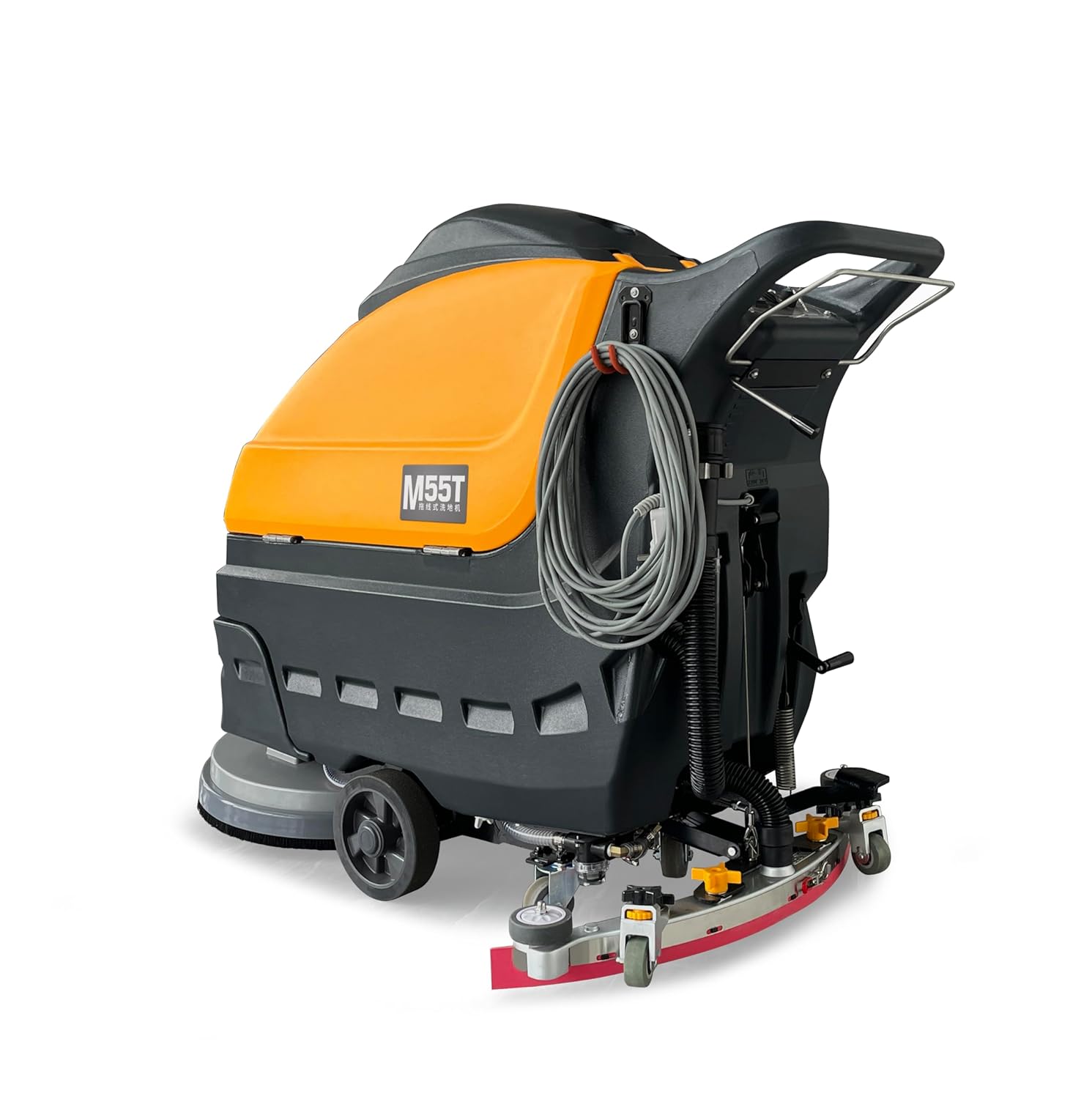 Professional-Grade Floor Cleaning for Demanding Spaces The Nanbo M55T Hand Push Floor Scrubber combines international design with robust performance, offering a 33.5-inch cleaning width, 70L high-capacity tanks, and 3000m³/h airflow for commercial-grade efficiency. Its wired design eliminates battery hassles, while the ultra-quiet motor (with multi-layer noise reduction) suits noise-sensitive environments. Why Choose M55T? Ergonomic Push Design: Reduces operator fatigue with smooth maneuverability. Smart Touch Panel: Intuitive controls for instant operation. Durable Build: 115kg heavy-duty frame with corrosion-resistant alloy components. Technical Specifications Max Speed: 15m/min | Power Cord: 15m Solution Tank: 60L | Sewage Tank: 70L Ideal for: Warehouses, supermarkets, airports, and industrial facilities.