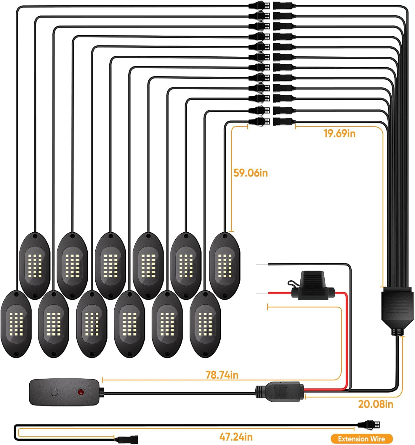 Illuminate your vehicle and stand out on the road with Honalia pure white rock lights for trucks! Featuring a brilliant pure white light, these rock light kit are designed to enhance visibility and add a touch of style to your truck. High Brightness Pure White Light,The 6000K color temperature provides bright, clean illumination, ensuring your vehicle is easily seen in any environment, day or night. Convenient Switch Design, rocker lights equipped with an easy-to-use switch, you can effortlessly control the rocklights, allowing you to turn them on or off as needed. Versatile application, ideal for trucks, these white led rock lights pure white are perfect for enhancing your vehicle's appearance in various settings. Upgrade your vehicle’s look and improve safety on the road with our neon light kits. Illuminate your journey.