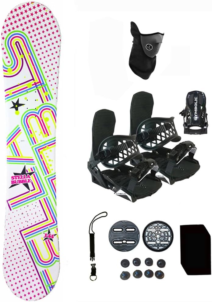 These Various Stella / SLQ Snowboards use ABS sidewall construction which gives the board good edge hold on hard pack while the Flexrite wood core gives it good response and keep the vibration low. The 4400 extruded base is durable and built to last with stainless steel rails. This board will easily allow you to go in either direction. The high gloss finish with a matte print overlay allows the graphics to be rich looking while keeping away scratches. BINDINGS; Symbolic Freestyle Snowboard Bindings w/ Discs and screws Included Note- (Make sure you select the right size and color in the drop down bars above.) (we cant guarantee fit of your boots so order alittle larger bindings) Molded ankle strap Aluminum ratchets Adjustable Toe plate Adjustable Toe and Ankle Strap Anatomical Baseplate High Grade plastic construction 4 Hole Disc and 3d Hole Compatible EVA Toe strap Padded Baseplate Discs and screws Included.